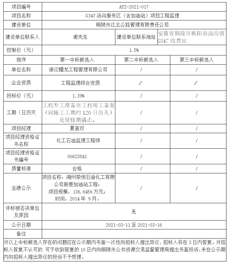 建设单位联系地址:安徽省铜陵市枞阳县汤沟镇G347收费站