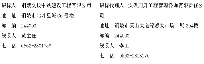 本招标公告同时在铜陵市综合交通投资集团有限公司网、安徽同升工程管理咨询有限责任公司网发布。